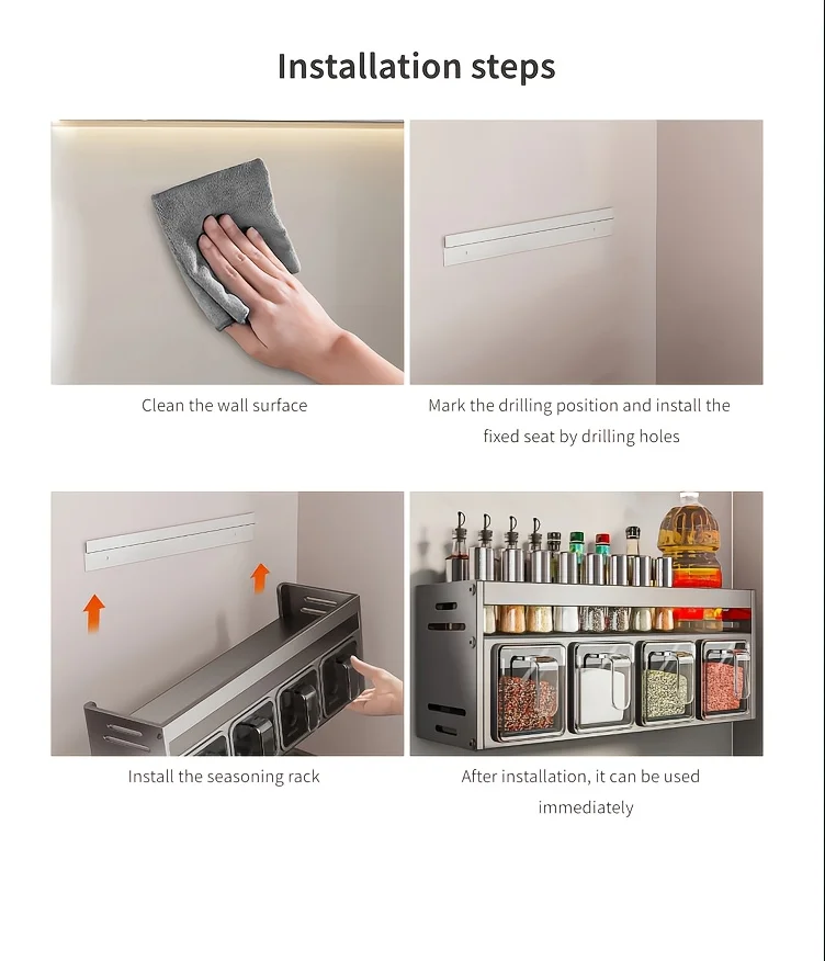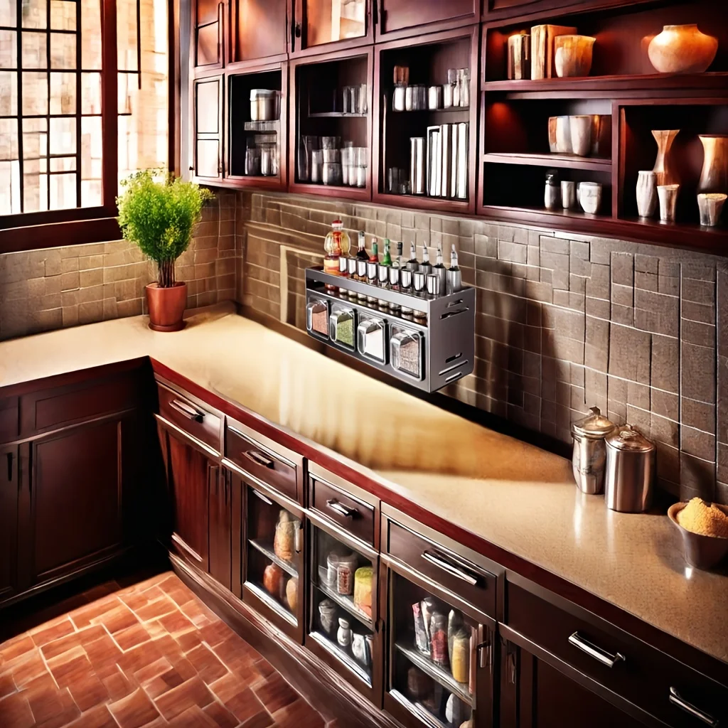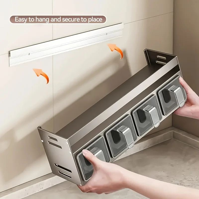 Space-Saving Aluminum Spice Rack Wall-Mount Organizer